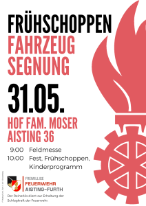 Die Freiwillige Feuerwehr Aisting-Furth lädt herzlich zur Segnung ihres neuen Tanklöschfahrzeugs mit anschließendem Frühschoppen ein.